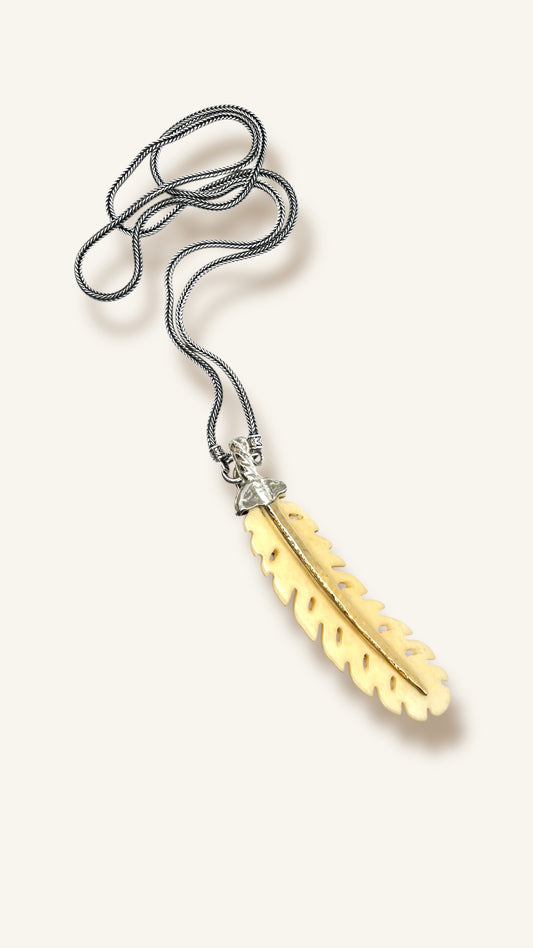 Alfinete / Pendente Pena Osso Prata e Ouro
